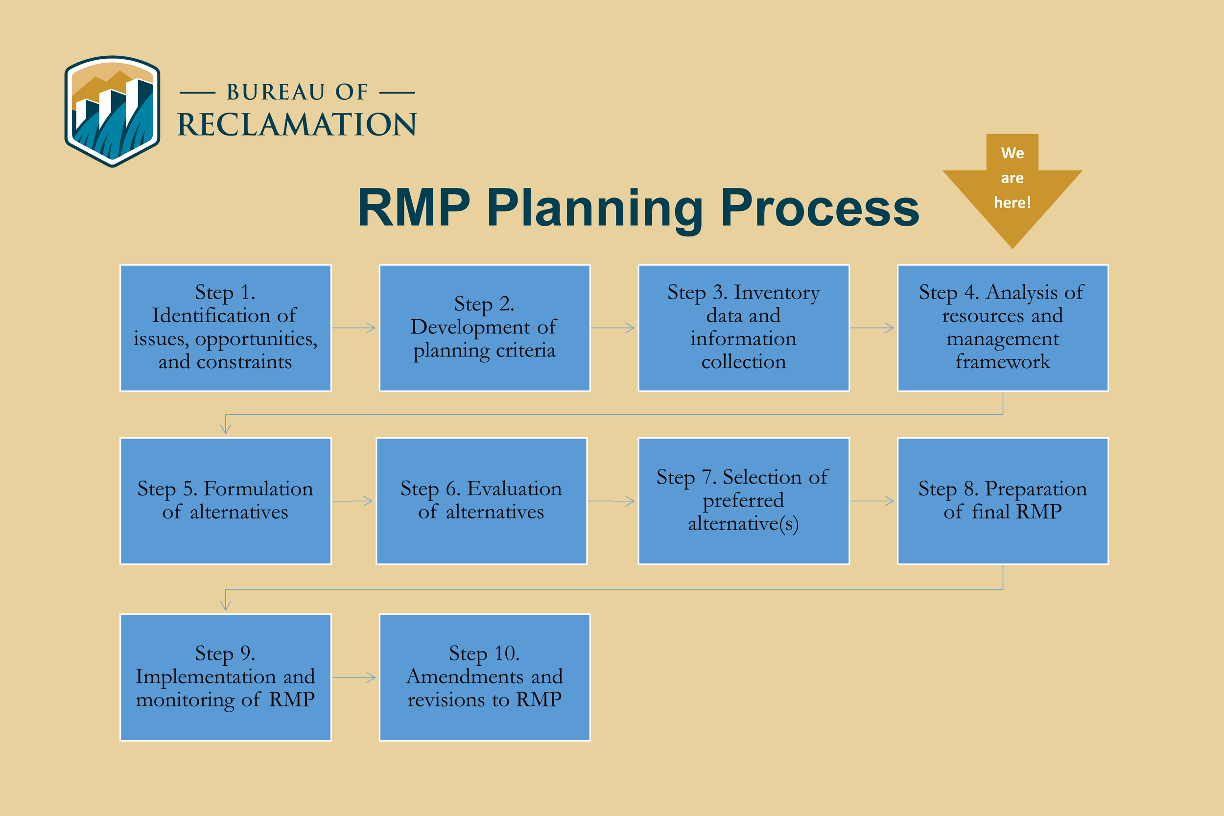 The Bureau of Reclamation’s RMP Guidebook encourages a robust public involvement process where Tribes, government agencies, non-governmental organizations, and the public can participate in the development of the RMP. Specifically, Reclamation has solicited input regarding issues, opportunities, and constraints to be addressed in the draft RMP. Reclamation also welcomed input on best available data, relevant information and references, or other data sources to allow for the preparation of a robust draft RMP. Reclamation provided multiple public involvement opportunities for interested parties to participate and provide feedback on the draft RMP process.