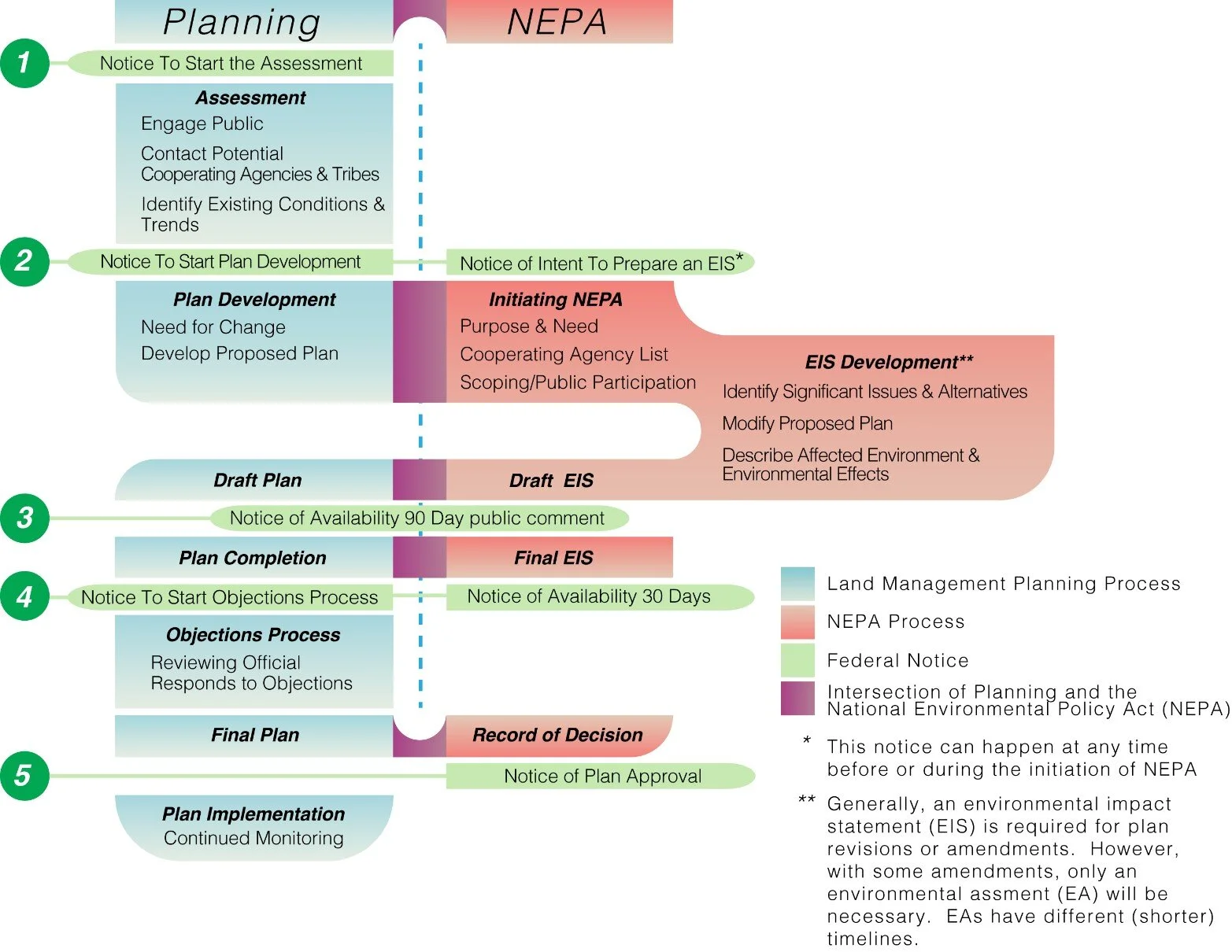 The NEPA process begins when a federal agency develops a proposal to take a major federal action. Federal agencies prepare an EIS if a proposed federal action may have a significant effect on the quality of the human environment. The steps in the process of of preparing an EIS include the following: